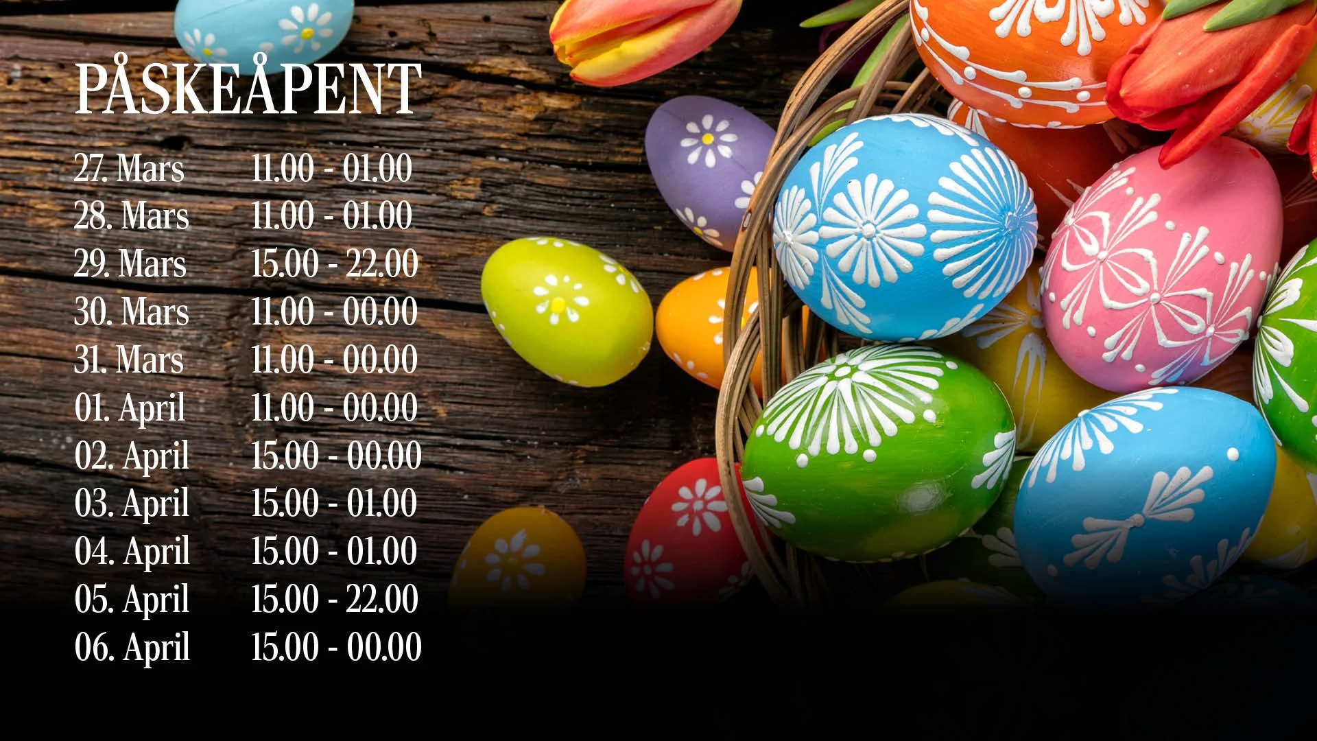 Fre – lør kl. 11:00 - 01:00
